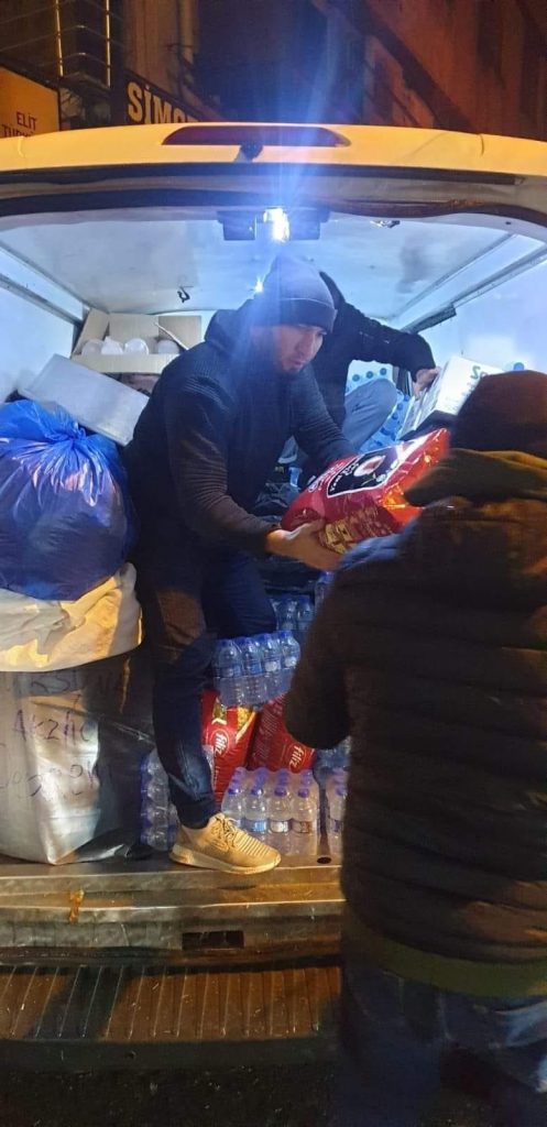 Kazak kardeşimiz, sosyal aktivist Ayşe Savaş Alparsilan İstanbul’dan çocuk, yetişkin kıyafetleri, yiyeceklerle dolu bir kamyonu organize ettirdi, kendi bereber Hatay bölgesine giderek, teslim etti. Bu işte Almanya’daki kardeşimiz, tanınmış işadamı Beşirhan Malabakan, diğer Almanya’daki kardeşleriyle birlikte çok miktarda para toplayıp yardım etti.