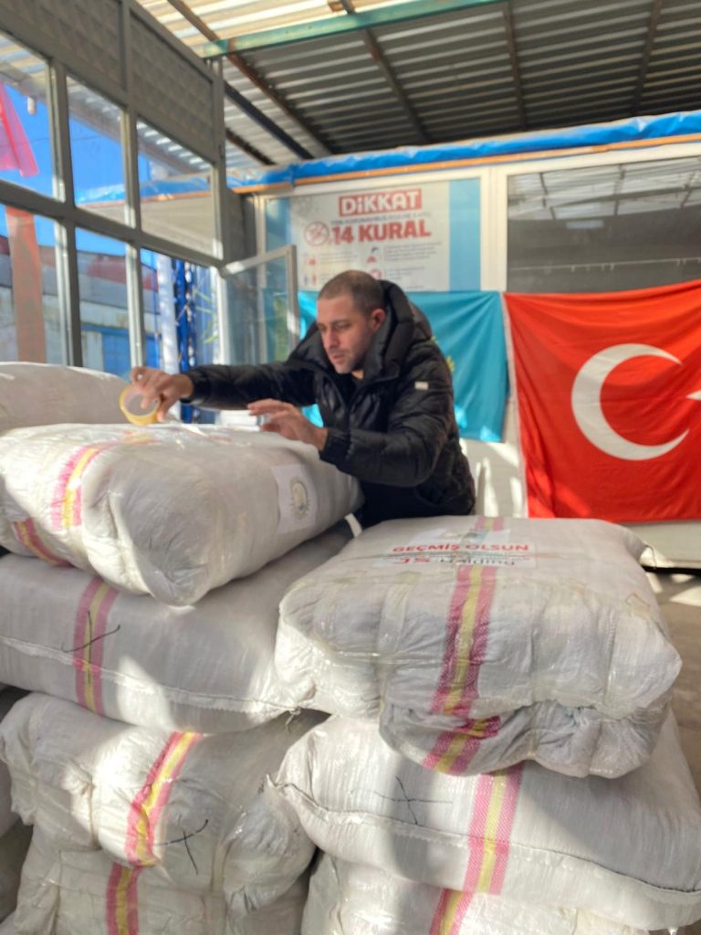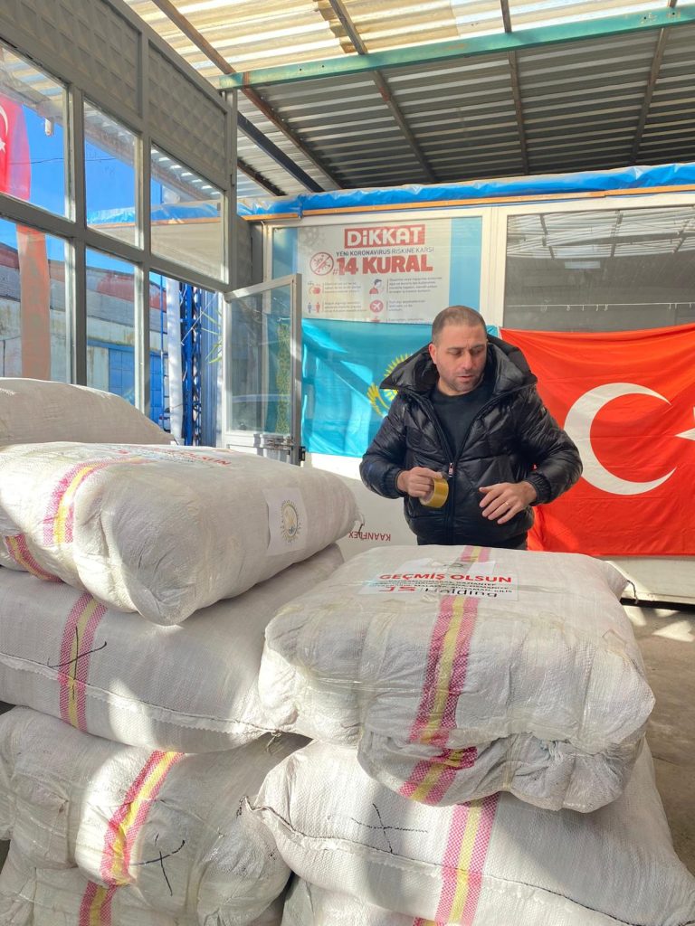 Merkez Başkanı Ganimet Kaysauli ve Başkan Yardımcısı Ercan Uayis’in kararı ile Türk kardeşlerine sıcak bir destek vermek amacıyla Merkez temsilcileri Ümit Özer ve Nurbazar Zhangirtegi İstanbul’dan Adana ve Antalya’ya yardım malzemelerini, 25.000 adet farklı iş eldivenleriniz ve 2 adet mobil evini (konteynır) teslim ettiler.